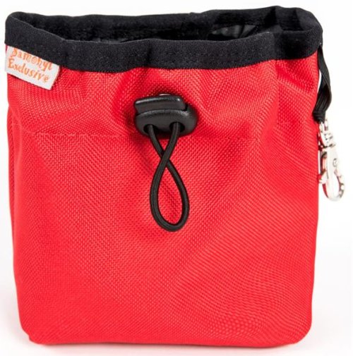 Praktický nylonový pamlskovník je velmi užitečná pomůcka při výcviku, na výstavách a krátkých procházkách. Velikost pamlskovníku je vhodná pro drobnější odměny. Vnitřek pamlskovníku je z omyvatelného šusťáku, který vytažením vyklepete. Kovová karabinka na pružném poutku umožňuje snadné zavěšení např. k opasku. Má úchyty, kterými je dobře připevnitelný i na opasek u kalhot. Stahovací šňůrka s brzdičkou lehce pamlskovník uzavře. Snadný na údržbu.