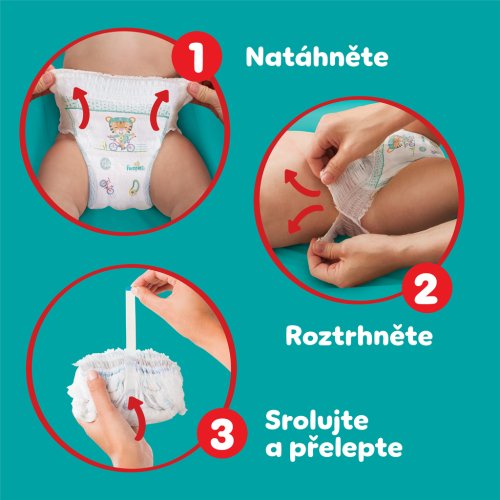 Jakmile začne být vaše děťátko aktivnější, budete potřebovat takovou plenku, která mu pohodlně padne a dokáže je spolehlivě chránit při každém pohybu. Dopřejte svému děťátku nejlepší pohodlí a ochranu před protečením od Pampers s plenkovými kalhotkami Pampers Premium Care Pants: jejich 2× širší hebké manžetky chrání před zarudnutím a protečení, jejich ultra hebký pružný pas 360° FIT se přizpůsobuje pohybům vašeho děťátka při objevování světa a jejich jedinečná kapsa Stop & Protect pomáhá zabránit protečení vzadu.