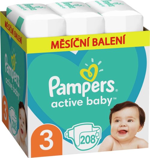 Dětské plenky Pampers Active Baby 3, 208 ks