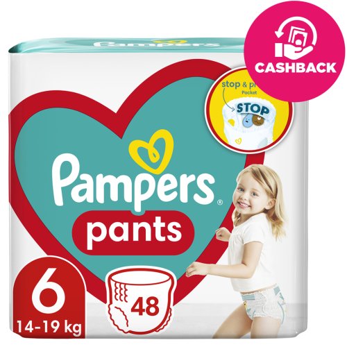 Plenkové kalhotky Pampers Pants s revoluční KAPSOU STOP & PROTECT, která spolu s dokonale padnoucím pružným pasem poskytuje až 12 hodin úplné ochrany proti protečení. Mají také super absorpční jádro, které okamžitě absorbuje tekutinu a dvojité bezpečnostní manžetky, které pomáhají předcházet protečení kolem nožiček.