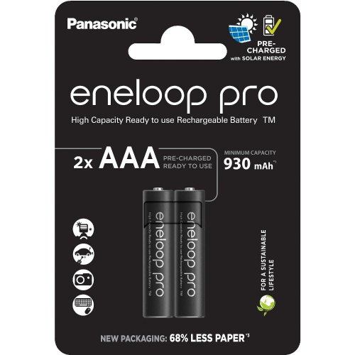 Připraveno k použití pro zařízení se středním až vysokým výkonem, jako jsou hračky, herní ovladače, bezdrátová zařízení atd. Baterie Eneloop PRO lze nabíjet pomocí standardní nabíječky baterií Ni-MH. Kapacita min. 930 mAh. Baterie Eneloop PRO se dodávají v nabitém stavu. Baterie Eneloop PRO mají až 500 dobíjecích cyklů. Díky extrémně nízkému samovybíjení mohou být baterie Eneloop PRO bezpečně uloženy, dokud je skutečně nebudete potřebovat. I po jednom roce skladování mají stále 85 % původního nabití. Balení je nyní 100% bez plastů. Toto balení Eneloop pro obsahuje 2 baterie AAA