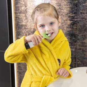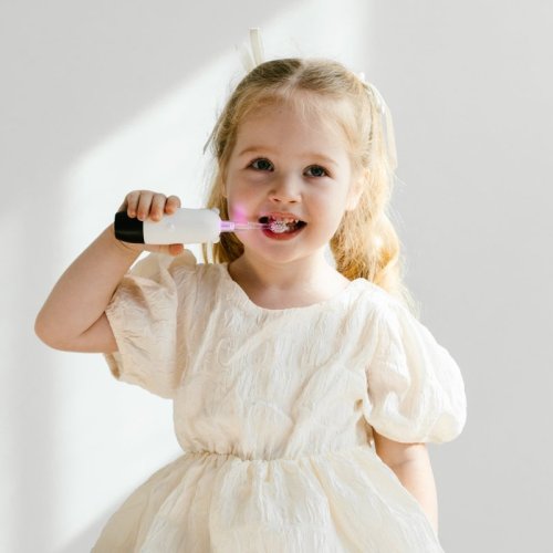 čistící hlava s měkkými štětinkami je vyrobena z DuPont materiálu, který je pevný a odolný proti opotřebení, má zaoblené konce, chrání dásně dítěte a účinně čistí zuby