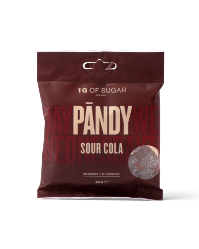 50 g (1 sáček) kyselé ovoce (Fizzy Bottles) kyselá kola (Sour Cola) borůvka-citron (Sour Fish) malina-hruška (Sweet Hearts)