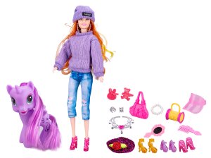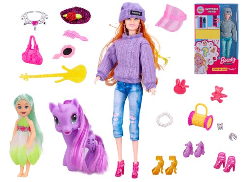 Panenka 29 cm s překvapením s doplňky - mix barev (fialová, zelená)