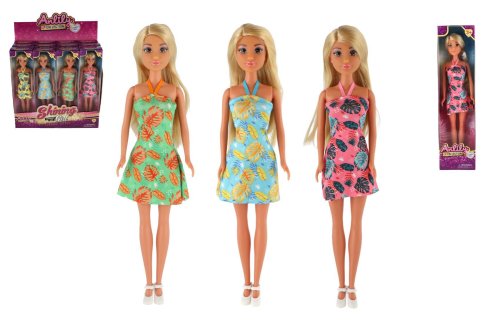 tylová panenka Anlily je připravená na den plný slunce a zábavy! Oblečená do pestrých plážových šatů ve 4 barevných variantách potěší každou malou parádnici. Díky své výšce 30 cm se skvěle hodí k dalším doplňkům a sadám z řady Anlily. Skvělý dárek pro hru na módní přehlídku i letní dovolenou. Výška panenky: 30 cm Vhodné pro děti od 3 let