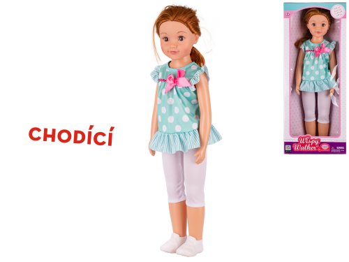 Chodící panenka s mašlí. mrkací oči. Velikost 70 cm.