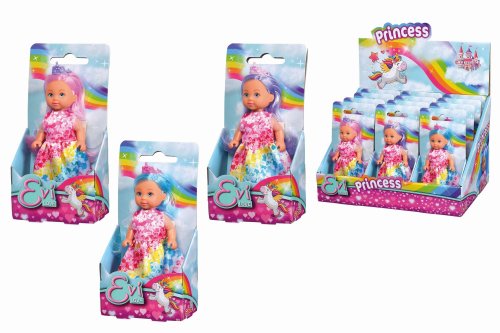 Panenka Evička jako duhová princezna s barevnými vlásky. Výška 12 cm. 3 druhy. Displej obsahuje 12 ks.
