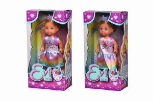 Panenka Evička jako roztomilá víla s potiskem jednorožce a odnímatelnými křídly. Výška panenky 12 cm.