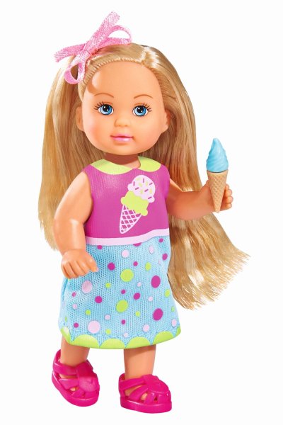 Panenka Evička má nový přístroj na výrobku zmrzliny. Naskládej zmrzliny do přístroje, přiklop, otoč a natoč zmrzlinu do kelímku. Velikost panenky 12 cm.