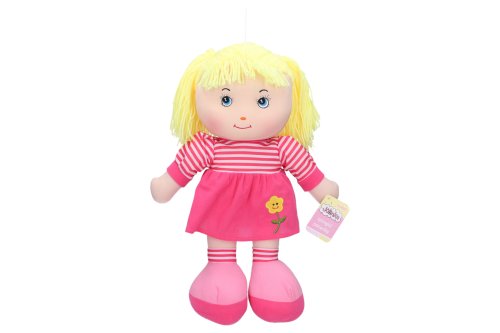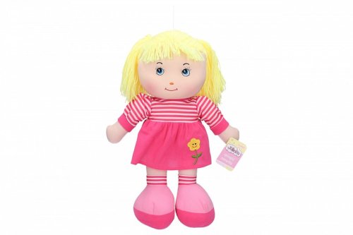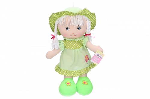 Látkovou panenku s roztomilým obličejem, velkými kukadly, krásnýma šatičkami a vlásky z vlny si oblíbí všechny malé slečny! Díky měkkému tělíčku i hlavičce může být kamarádkou nejen při hraní, ale také při usínání!