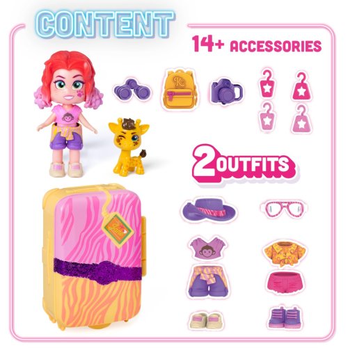 Jste připraveni vyrazit na cestu? Kufřík KookyLoos obsahuje vše, co potřebujete, abyste se skvěle bavili. Čekají na vás až 4 modely ke sbírání! Milující dobrodružství Jane je nezastavitelná! Jejím přirozeným prostředím je savana a na safari stará o zvířata a chrání je. Pomozte jí vybrat oblečení, aby při východu slunce mohla vydat na expedici a trávit čas s přáteli, dokud na obzoru neobjeví měsíc. Má také tři různé obličeje, které můžete změnit jedním kliknutím. Vše si můžete sbalit do kufru a vzít s sebou!