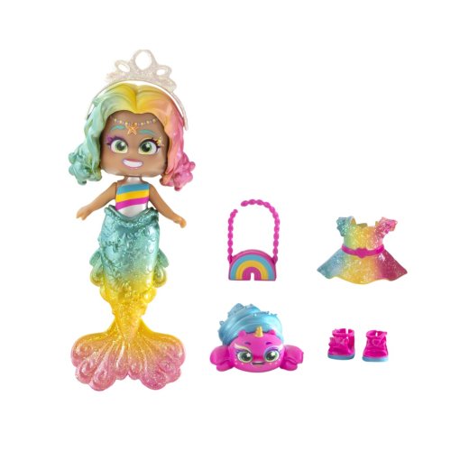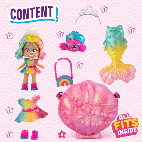 KookyLoos dobývají i moře!Objevte Star, Pearl, Coral a Jewel - malé mořské víly z Kooky Springs. Všechny jsou ve vlastní mušli, které mohou sloužit i jako taštička a můžete si ji vzít kamkoliv budete chtít! Uvnitř najdete spoustu doplňků a exkluzivního mazlíčka. Všechny navíc mají ocas mořské panny, který si můžete sundat, abyste odhalili nožičky a oblékli je do ultra-módního outfitu! Umělecká a kreativní, Coral miluje malování živočichů a mořských krajin. Milovnice korálů a jejich různorodých tvarů a barev, její motto zní: „Život je umění, žijte v barvě“. Sbírá vše duhové.Balení obsahuje – 1× kabelka – mušle, exlusivní panenka, ocas mořské víly, exlusivního mažlíčka, extra outfit, boty a ostatní příslušenství.