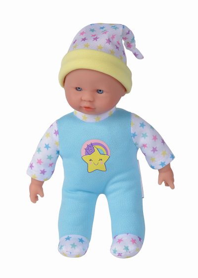 Panenka s měkkým tělíčkem a pěti zvuky, v roztomilém barevném designu s hvězdičkami, 3 druhy. Velikost 20 cm.