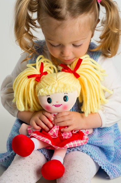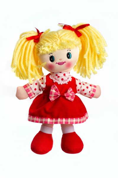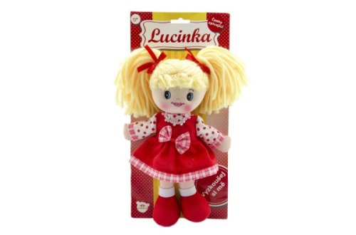 Hadrová panenka Lucinka po zmáčknutí bříška povidá: "Ahoj, já jsem Lucinka a naučím tě písničky" a zpívá písničky "Skákal pes..., Holka modrooká..., Kočka leze dírou..." Rozměr: 30 cm, na kartě 18 x 38 x 9 cm Vhodná od 0 let Výrobek obsahuje nevyměnitelné baterie