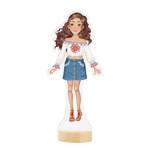 Balení obsahuje oblékací panenku, 30 magnetických částí (oblečení, boty, doplňky) a dřevěný podstavec, díky nimž lze vytvořit nespočet módních kreací.