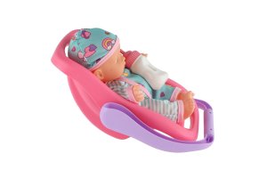 Roztomilá panenka s pevným telíčkem. Toto miminko udělá jistě radost každé holčičce a stane se tak její nepostradatelnou součástí. Součástí balení je nosítko a lahvička, což určitě každá maminka pro své miminko nutně potřebuje na výlety. Velikost panenky: 20 cm Rozměr balení: 16 x 24 x 12 cm. Vhodné pro děti od 3 let.