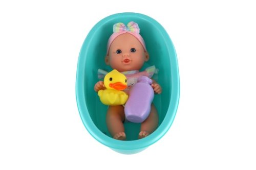 Touto panenkou zaručeně uděláte radost každé holčičce. Miminko je ve vaničce s kachničkou, což ocení každý milovník vody a koupání. A její roztomilý výraz určitě očaruje nejen malé holčičky. Velikost miminka: 26 cm Rozměr balení: 20 x 33 x 10 cm Vhodné pro děti od 3 let