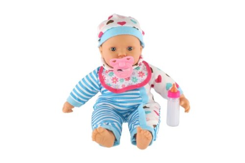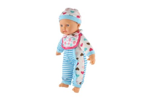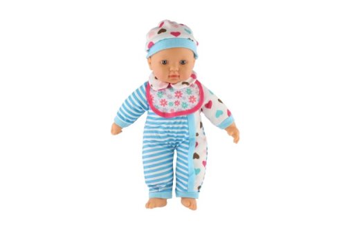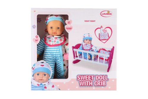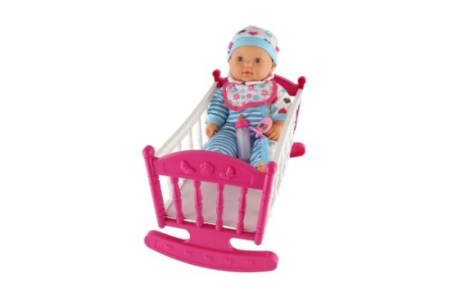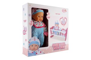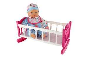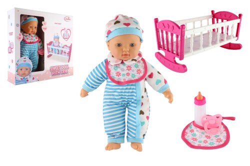 Roztomilá panenka s měkým tělíčkem v krásném oblečku. Toto miminko udělá jistě radost každé holčičce a stane se tak její nepostradatelnou součástí. Součástí balení je lahvička a dudlík, také bryndáček a nesmí chybět ani postýlka, které určitě každá maminka pro své miminko nutně potřebuje. Velikost panenky: 38 cm Rozměr balení: 43 x 41 x 11 cm