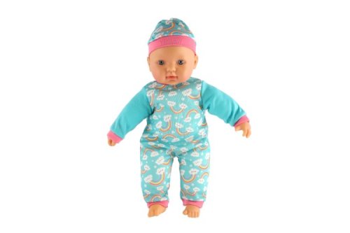 Roztomilá panenka s měkým tělíčkem v krásném oblečku s duhami. Toto miminko udělá jistě radost každé holčičce a stane se tak její nepostradatelnou součástí. Součástí balení je i lahvička a dudlík, které určitě každá maminka pro své miminko nutně potřebuje. Velikost panenky: 40 cm Rozměr balení: 41 x 19 x 12,5 cm