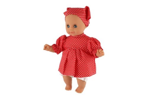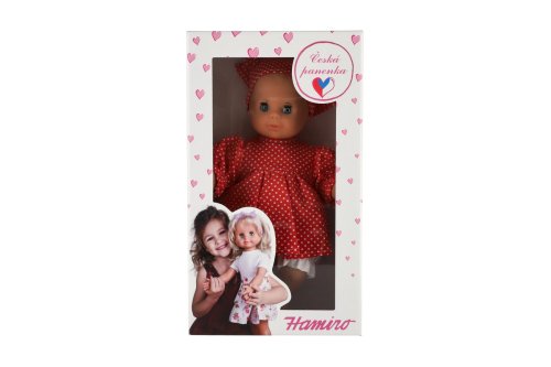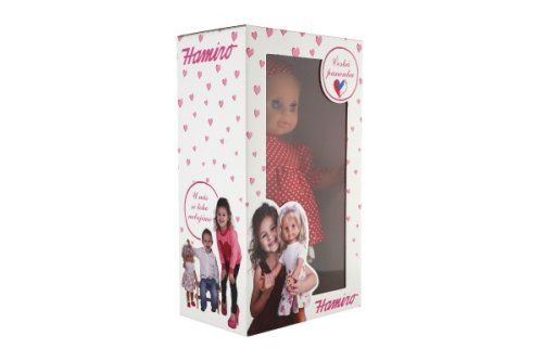 Roztomilé miminko v šatech s šátkem si oblíbí každá malá holčička, která si chce hrát na maminku a starat se o své miminko. Miminko má látkové tělo. Délka 30 cm. V krabici 20x35x13 m.