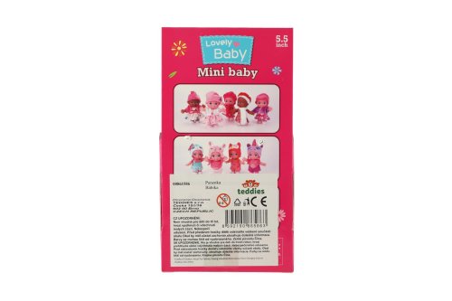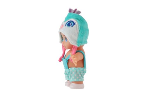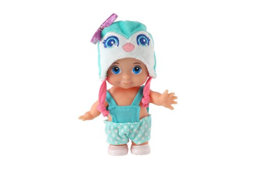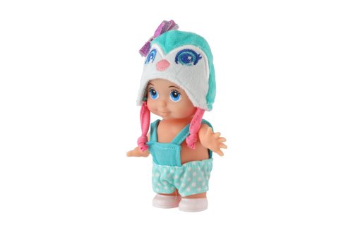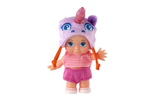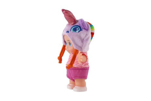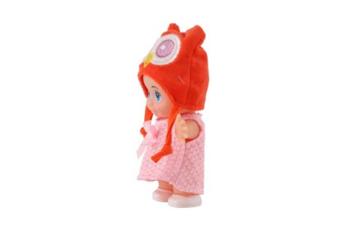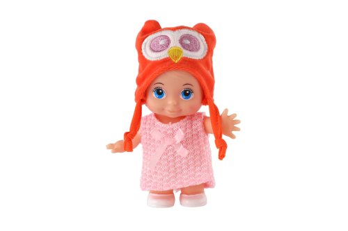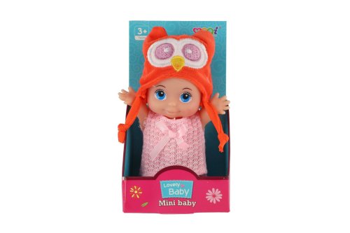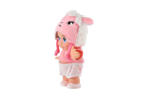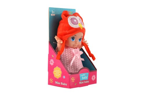 Panenka s pevným tělem a čepicí s motivem zvířátka. Panenka hýbe ručičkama v ramenou. Rozměr panenky: 15 cm Vhodné od 3 let