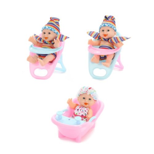 Touto panenkou zaručeně uděláte radost každé holčičce. Můžete si vybrat panenku ve vaničce, v kočárku, chodítku, židličce nebo i s nočníkem. Každá panenka má u sebe doplněk. Rozměr panenky: 11 cm Vhodné od 3 let