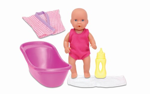 Panenka, která pije a čůrá s doplňky pro koupání. Set obsahuje: lahvičku a vaničku včetně ručníku a župánku. Výška panenky 12 cm.