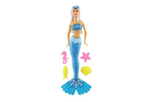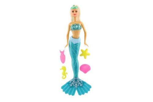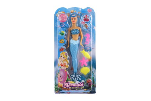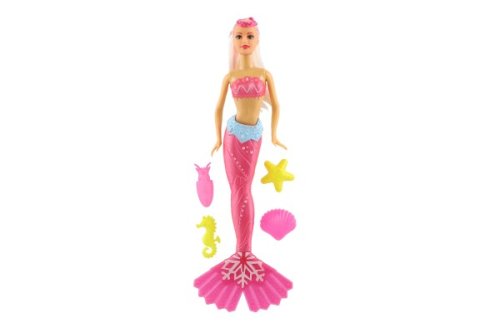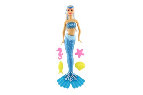 Plastová panenka mořská panna. Užij si dobrodružství na dně oceánu s mořskou pannou! Učeš panence její dlouhé vlasy ať okouzlí celý podmořský svět! V balení i 4 doplňky, ploutev je otočná o 360 °C. Rozměr balení: 34 cm Vhodné pro děti od 3 let