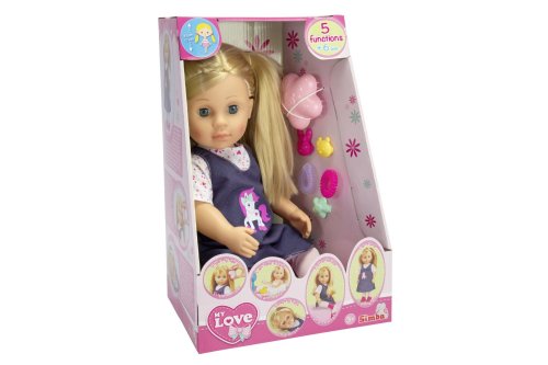 Vinylová panenka My Sister má celkem 5 funkcí - zavírá očíčka, může se koupat ve vaně, umí stát, má extra ohebná kolínka a dlouhé vlasy pro styling. Výška panenky je 43 cm. Součástí jsou doplňky do vlasů 6 ks včetně hřebenu.
