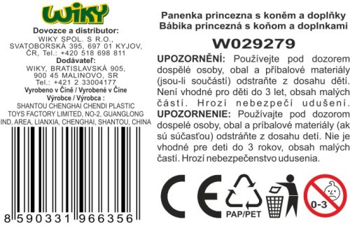 Panenka princezna s koněm a doplňky. Velikost 29 cm. Balení obsahuje panenku, koníka, šperky pro panenku.