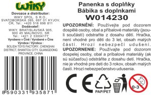 Panenka s doplňky. Velikost 18 cm. Součástí náramek, 3 prstýnky. 2 varianty - hnědé, rudé vlasy.