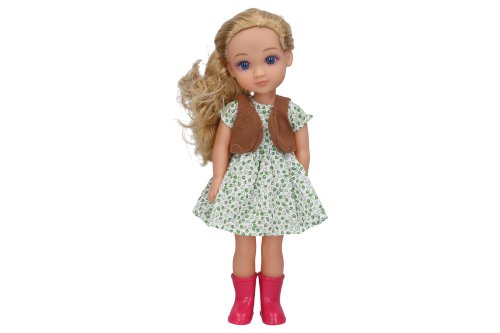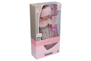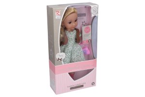 Panenka v šatech s efekty. Velikost 35cm. Zvukové efekty. obsahuje: panenku, kabelku, hřeben. 3xAG13 baterie součástí. 2 varianty - růžová, zelená.