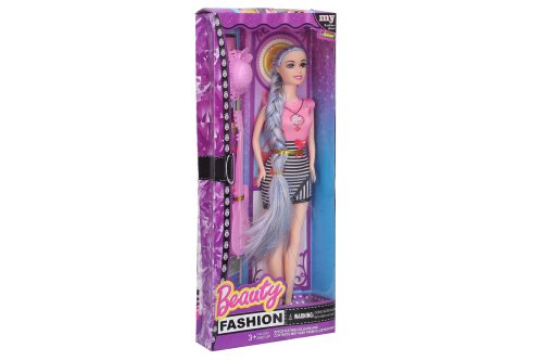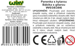 Panenka s kytarou. Velikost panenky 29 cm. Obsahuje: panenku, klobouk, kytaru.