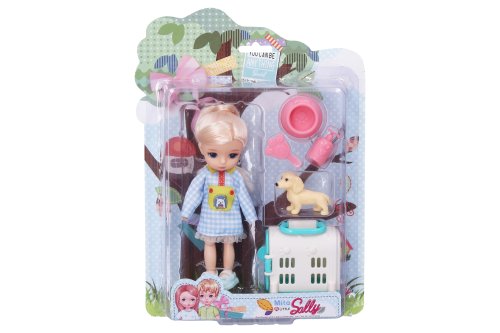 Panenka s pejskem set. Velikost 12,5 cm. Pohyblivé klouby. Obsah balení - panenka, figurka pejska, příslušenství.