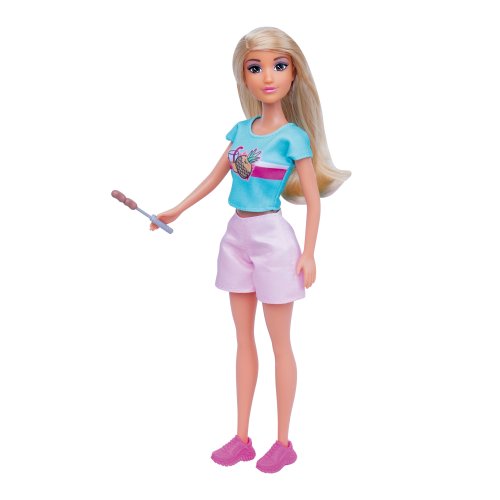 Panenka se stanem set. Velikost 30 cm. Světelné efekty ohniště. 2xAG13 baterie do ohniště nejsou součástí. Součástí stan, ohniště, batoh, dalekohled, sluchátka, kempingová taška, židle, 2 opékací vidlice, rádio, láhev, brýle, svítilna, baterka.