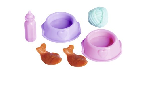 Panenka Steffi s kočičkou s dvěmi malými koťátky a příslušenství - misky, jídlo, lahvička, klubíčko, pelíšek.