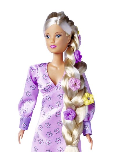 Panenka Steffi s extra dlouhými vlasy, se 6 sponkami, zaplétacím nástrojem a kartáčem na vlasy. Velikost panenky 29 cm.