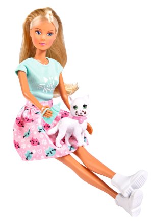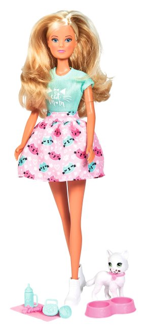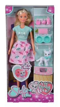 Panenka Steffi v módním outfitu s kočičími motivy s koťátkem. Steffi se stará o koťátko, krmí je a když má po krmení špinavou tlamičku, očistí mu ji přibaleným hadříkem namočeným v teplé vodě (flíčky reagují na teplotu a při teplotě > 31° C zmizí). V příslušenství nechybí ozdobný obojek, misky na krmení, lahvička na pití, kartáč a hračky pro koťátko. Velikost panenky 29 cm.