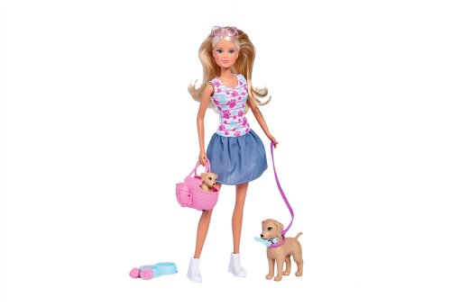 Panenka Steffi na procházce s pejskem a štěňátkem, včetně tašky a příslušenství, 10 ks. Výška panenky 29 cm.