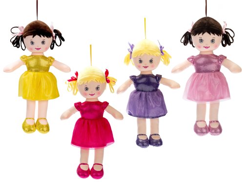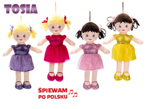Panenka Tosia hadrová 32 cm na baterie polsky mluvící a zpívající - mix barev (žlutá, fialová, světle růžová, tmavě růžová)