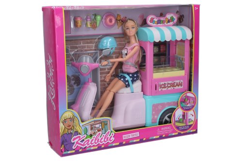 Panenka zmrzlinářka. Velikost 30 cm. Obsahuje panenku, zmrzlinářský skútr. helmu, doplňky.