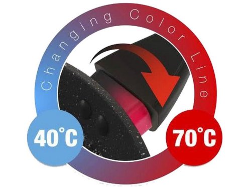 Pánev se vyznačuje novým technologickým prvkem, ochranný prstenec nad rukojetí se postupně se zvyšující teplotou mění z černé na sytě červenou barvu. Změna začíná při 40 st.C a postupně dochází k sycení červené barvy až do 70 st.C, kdy je pánev připravena k plnému vaření.