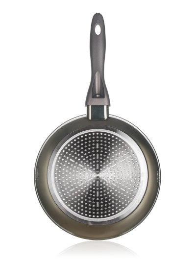 Hliníková litá kovaná pánev METALLIC PLATINUM s nepřílnavým povrchem. Vnější karbon metalický nástřik, plně indukční dno, soft - touch rukojeť. Nepřilnavý povrch je velmi tvrdý a odolný proti poškrábání. Pánev je odolná proti nárazu a deformaci tvaru. Vysoká tepelná vodivost zajišťuje rychlé a ekonomické vaření - dlouho drží teplotu.