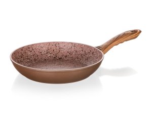 Kovaná hliníková pánev SMART STONE BRICK s bakelitovou rukojetí se soft touch povrchovou úpravou v imitaci přírodního dřeva.