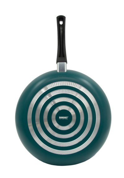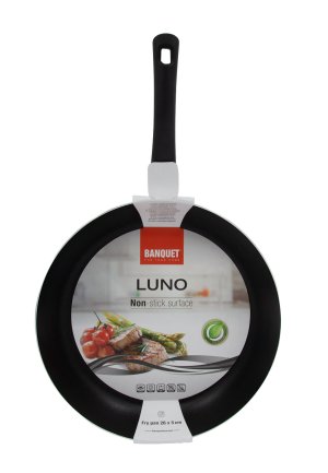 Hliníková presovaná pánev LUNO s nepřilnavým 2vrstvým povrchem. Vnitřní nepřilnavý povrch černá barva, vnější povrch tyrkysová matná barva,. S černou bakelitovou rukojetí. Pánev je vhodná na všechny typy varných desek mimo indukce.