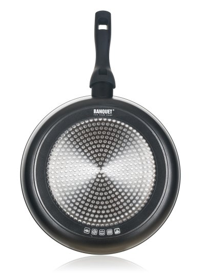 Hliníková kovaná pánev GRAZIA se značkovým nepřílnavým 3vrstvým povrchem ILAG PREMIUM. Vnější 2vrstvý žáruvzdorný nástřik. Indukční dno s piktogramovým laserovým potiskem.