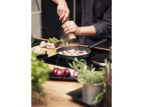Pánev s nepřilnavým povrchem Ceratec je bez fluoru a dalších škodlivých chemikálií. Vytváří nádhernou zlatavou kůrku na připravovaných pokrmech. Silné třívrstvé dno je optimalizováno pro rovnoměrný ohřev na všech varných deskách. Vyrobeno z 90 procent z recyklované nerezové oceli. Krásný kartáčovaný povrch. Vyrobeno ve Finsku. Průměr: 24 cm.