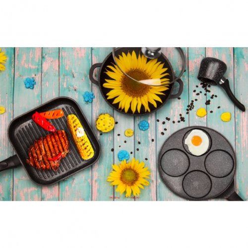 Spojení jednoduchého, ale účelného designu s kvalitou nepřilnavého povrchu dělá z této grilovací pánve perfektního pomocníka při přípravě šťavnatých steaků, ryb, zeleniny nebo třeba flambovaného ananasu.