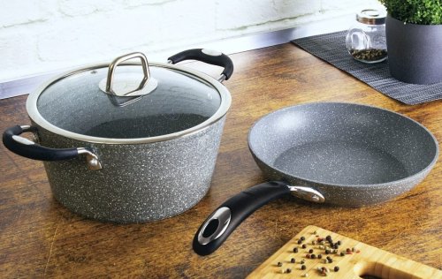 - materiál: kovaný hliník / nerez 18/10 / silikon- 3vrstvý nepřilnavý povrch s mramorovým designem Stone Touch Marble- povrch je vhodný pro zdravé vaření s minimem tuku- pevná, nýtovaná nerezová rukojeť- …