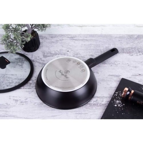 Univerzální pánev s titanovým povrchem v černém designu Monaco Collection. Moderní minimalistický design pánve vás jistě zaujme hned na první pohled. Matný černý povrch pánve je navíc velmi praktický při dlouhodobém používání. Vnitřní vrstva je potažena 3vrstvým titanovým povrchem, který je charakteristický svou dokonalou nepřilnavostí. Připravované pokrmy se tak nepřipalují a díky tomu se pánev velmi snadno čistí. Zároveň je vhodný pro zdravé vaření s minimem tuku nebo oleje, v závislosti na použitých surovinách klidně i bez jedinné kapky tuku. Titanový povrch, stejně jako ostatní použité materiály, neobsahují žádné škodlivé látky, vaření je tak zcela zdravé a hygienické. Zesílené Turbo indukční dno z nerezové oceli je kompatibilní se všemi druhy varných desek a spolehlivě funguje také na indukci. Jistě oceníte tepelně izolovanou rukojeť, která se při vaření nezahřívá a zůstává stále chladná. pánev Aspen je vhodná pro každodenní vaření, dušení i smažení, perfektně bude vypadat i při servírování hotových jídel přímo na váš stůl.